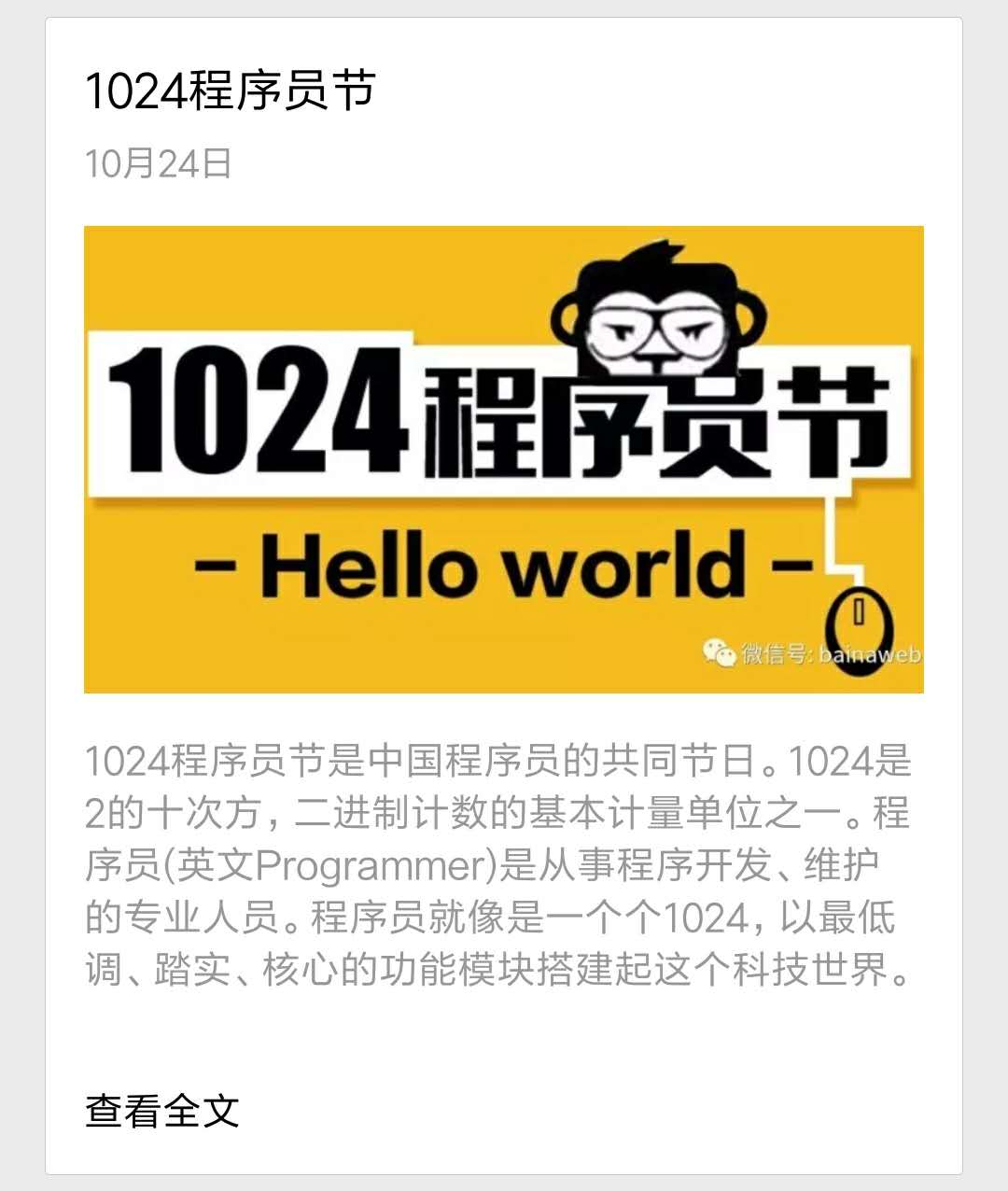 今天是 10 月 24 日,不知道你的朋友圈有没有被程序员节刷屏,反正我的是被刷了。