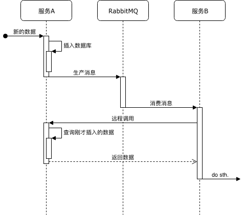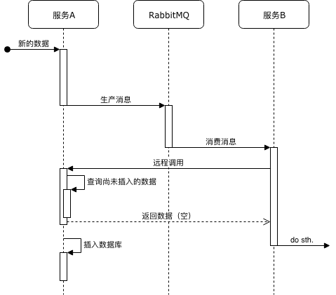 是的没错,插入数据和发送消息写在了一个事务里面。虽然我对数据库了解不多,但对事务的特性还是有所了解——发送消息的时候,数据库里确实还没有刚刚插入的数据,事务提交后才会生效,也就是说,服务 B 收到消息后远程调用回 服务 A 想查找刚刚插入的数据,能否查到全凭运气,取决于此时事务已经执行完。