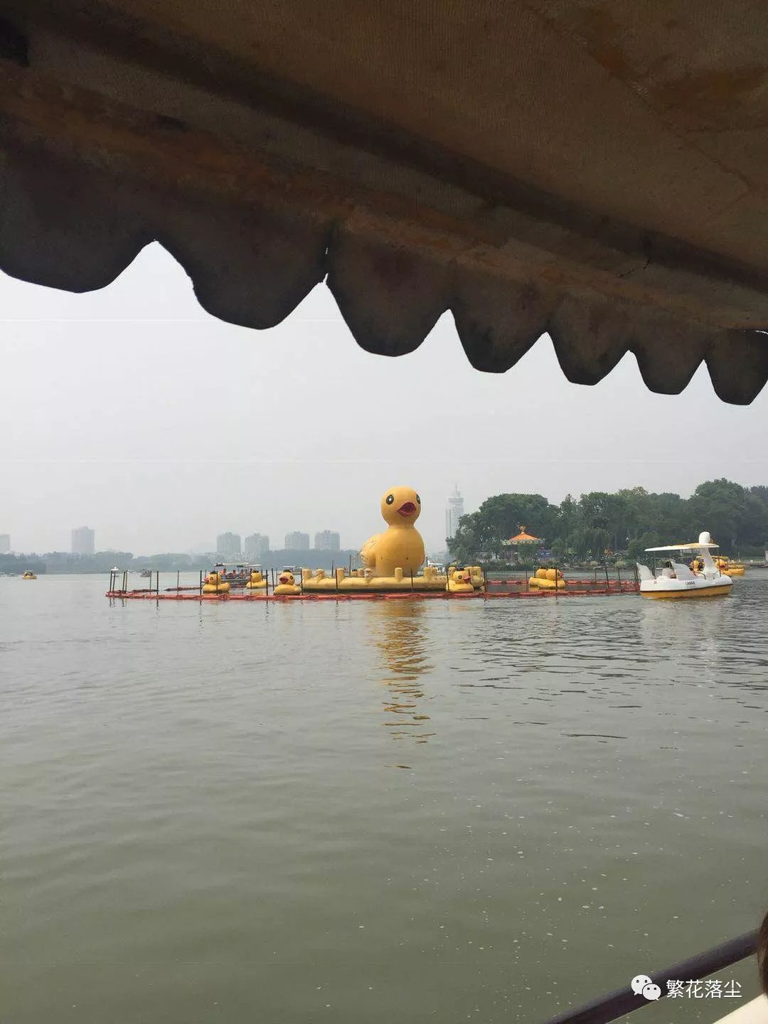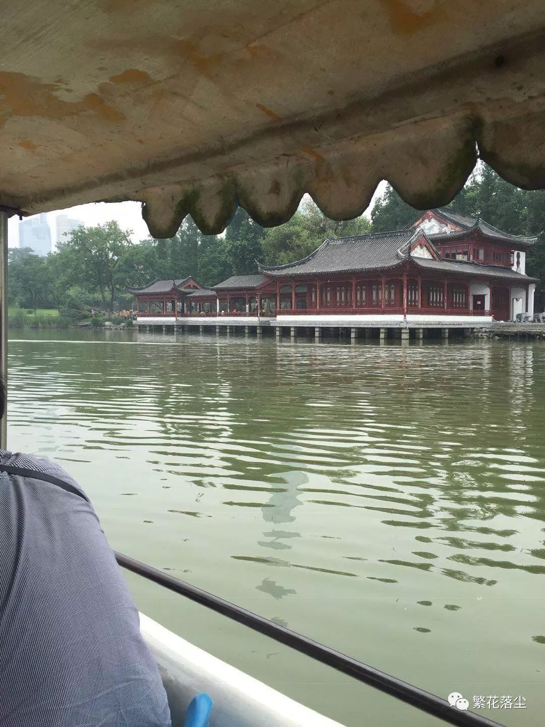 最后因为时间的关系,我们最后去了南京的玄武湖,这也是一个著名景点,外面是石头城墙,南京素有“石头城”的称谓,看到那长长的一段城墙才明白“石头”从何而来。玄武湖的湖水澄澈透明,中间还能看到下面的水草静静飘摇,湖面被分为了两段,中间有一条长长的桥道,一段段路再加一座座石拱桥拼凑而成,岸边有些亭台水榭供游人休憩。我们租了2条船在湖面游玩,不过真心价格挺贵的,100元一个小时,最后划了两个半小时,总共花了500多,最后在玄武湖的入口拍了张照作为留念。