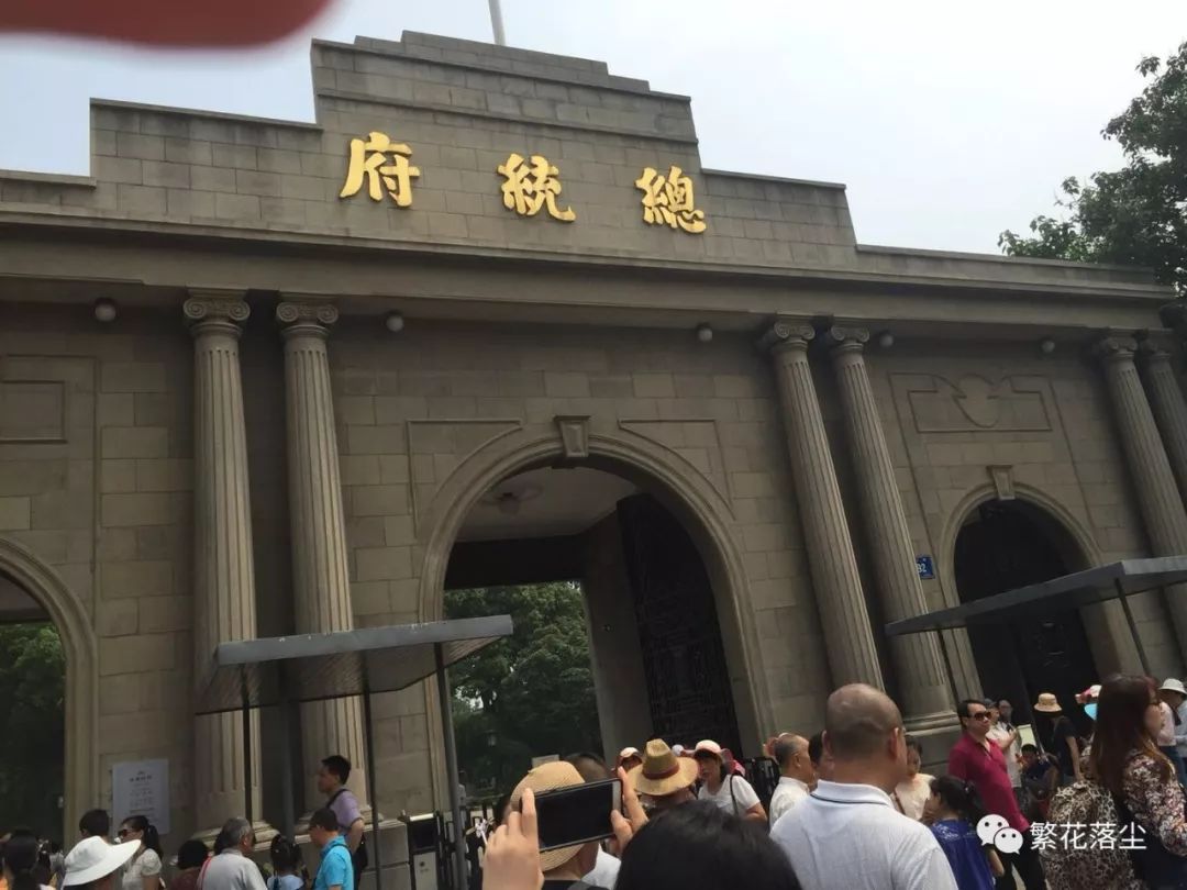 这是我们第二天上午参观的一个南京著名景点“总统府”,票价40元,还算比较合理吧,正门口就是宏伟的民国风格汉白石大门,这是我第一次比较正式的看到民国风格建筑,不用说,当然是立马拍一张。这地方是孙中山就任中华民国大总统时的旧址,并不是说这建筑有多么奇特瑰丽,主要是它的历史意义和纪念意义。进门出现在眼前的就是一条长长的庭院小道,两旁都是一些盆栽绿植,显得雍容大气,穿过小道就到了一个祠堂式的大堂,墙面上摆满了许多革命历史人物的相册,有蒋介石,孙中山,陈独秀等等,恕我历史学的浅,还有许多陌生的。跟随着人流穿行,走廊阁楼,绿树林荫,蜿蜒崎岖,浓浓的江南林园气息。
