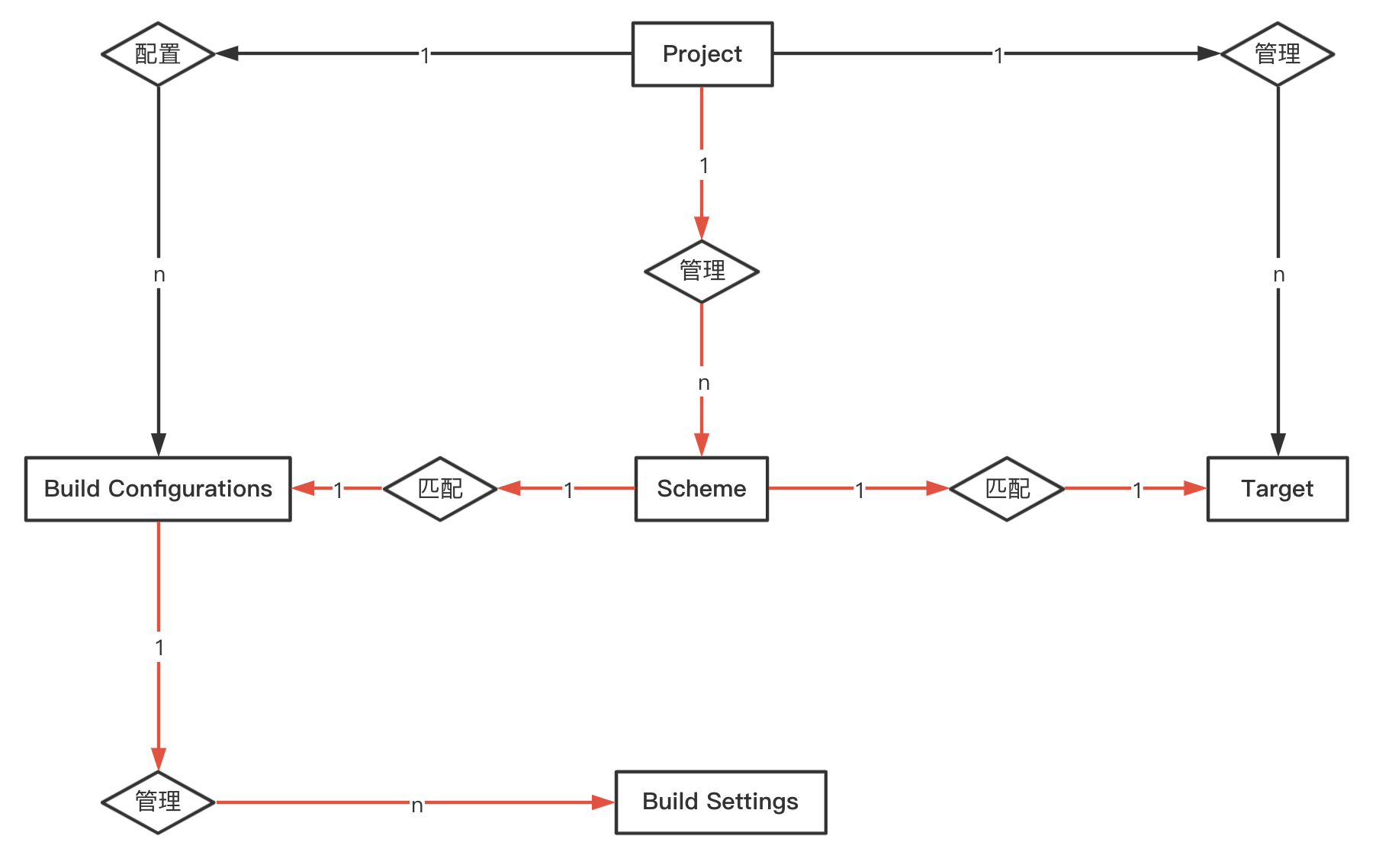 这是一张关于项目的具体配置体系的结构图,包括各个部分的关系。