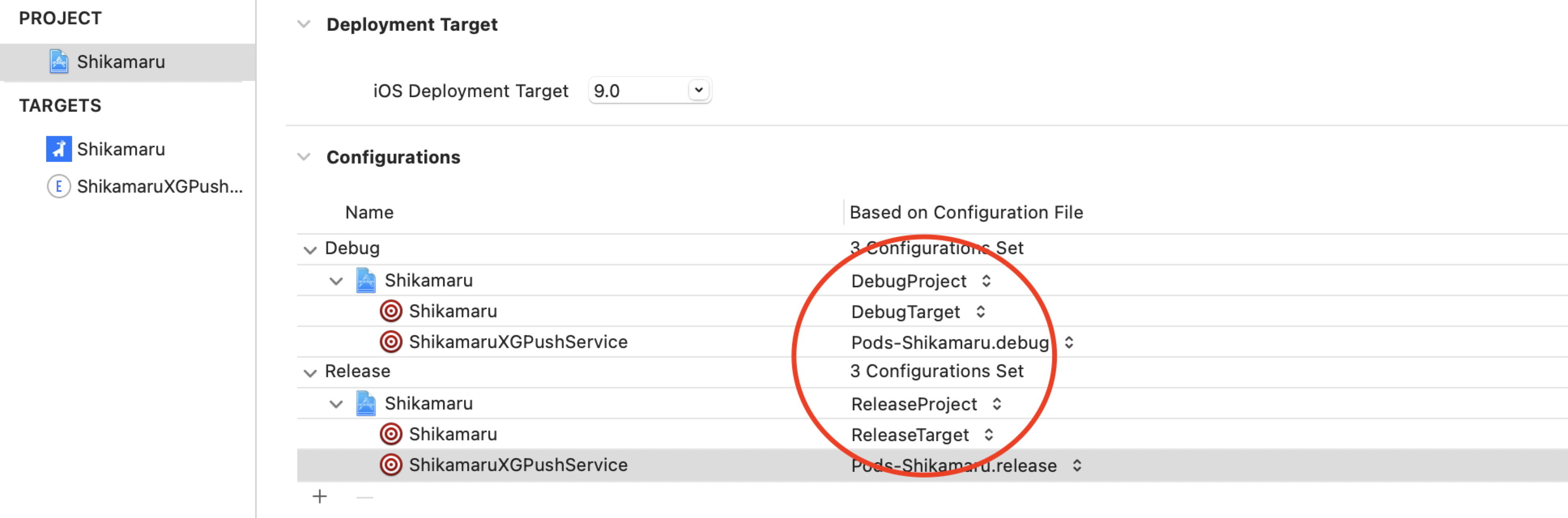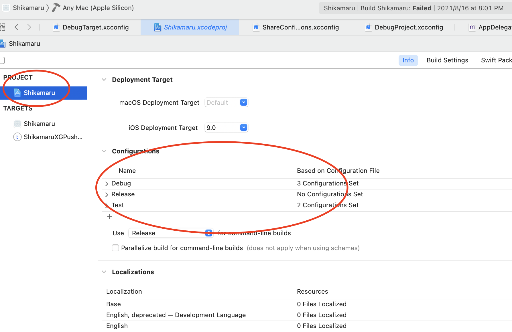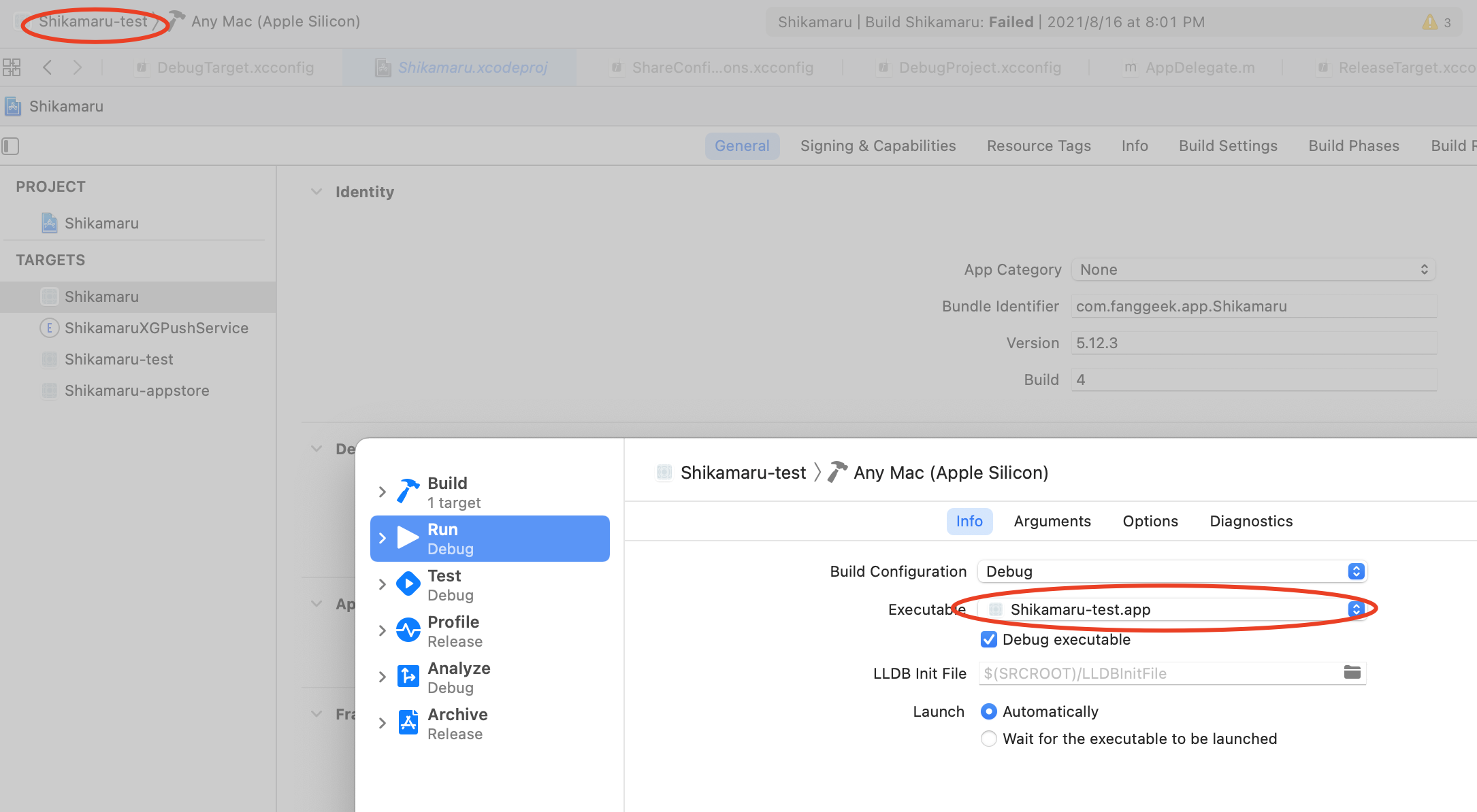 这里打开可以看到对应三个target,也就是可以切换不同的target来确定构建目标,不过一般来说,不会在这里切换,会对应环境构建Scheme来进行切换。