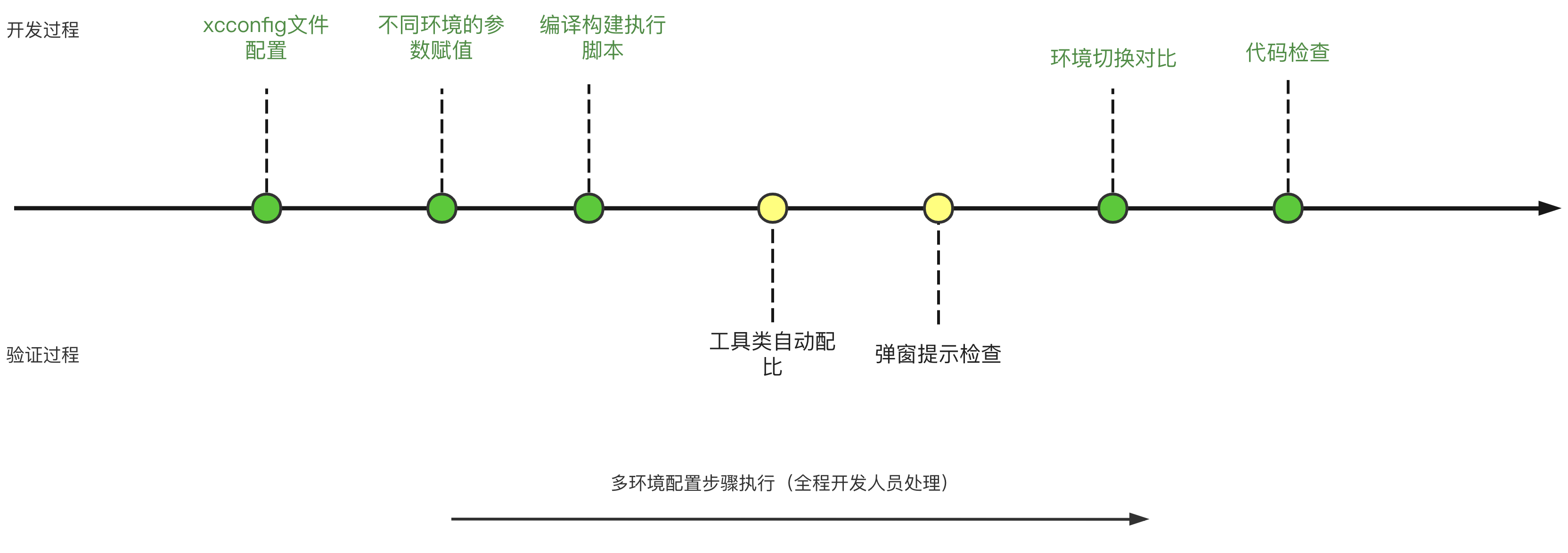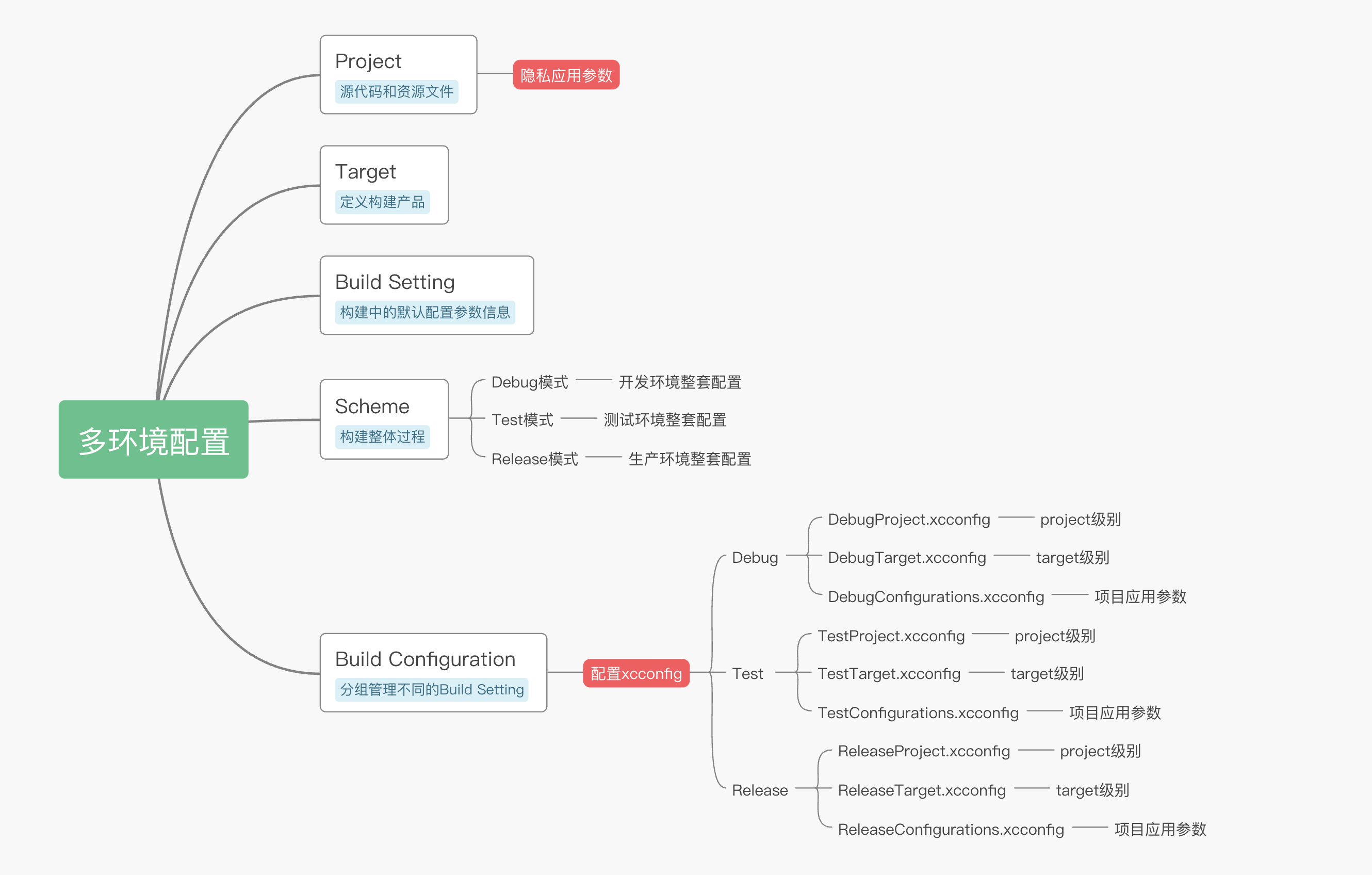 根据不同的环境设置多个target,意味着设置三个target,对应开发、测试、生产,配合设置不同宏定义参数进行内部设置的区分,比如三方库appId,网络请求头参数设置等。
