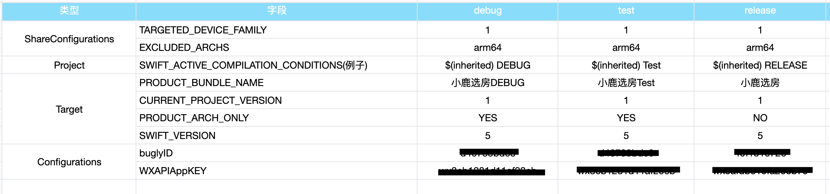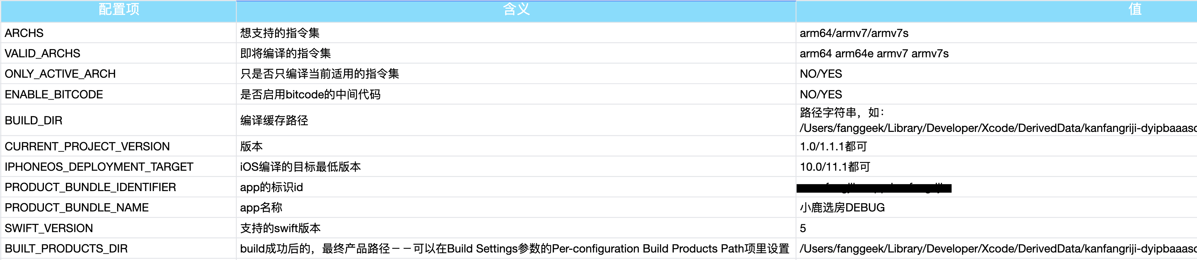 注意:这里是官方配置参数字段说明,如果需要覆盖掉buildsetting的参数,那么可以使用同名key字段,同时删除xcode中 buildsetting的参数;