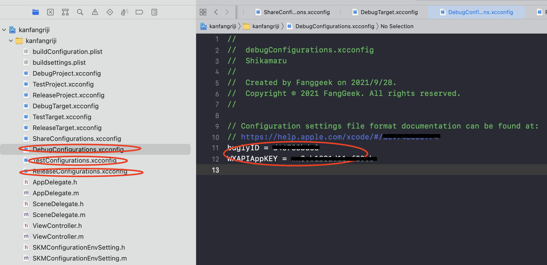 所以,这里我们选择第3个方案,实现Configuration+xcconfig的结合处理.