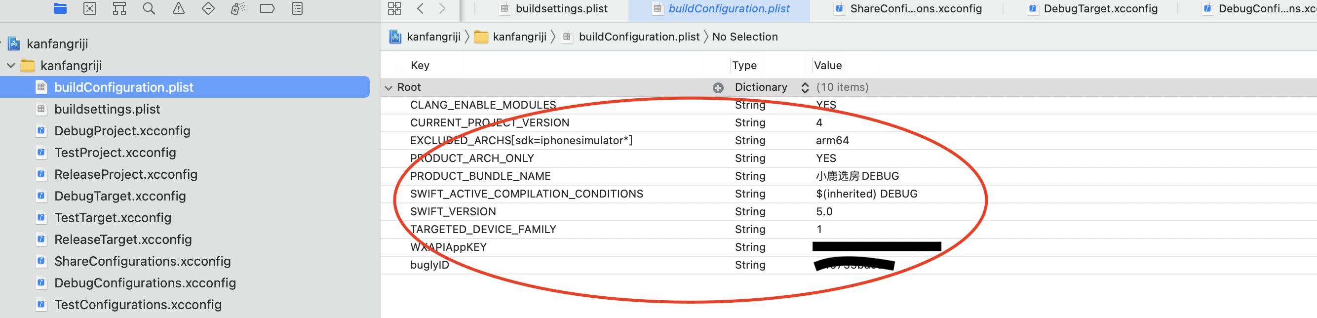 1.在2方案的基础上逐级下沉细节配置,按照业务需求可非手动动态添加或者修改配置,可以代BuildSettings里面的设置,可以看作是2方案的加强版